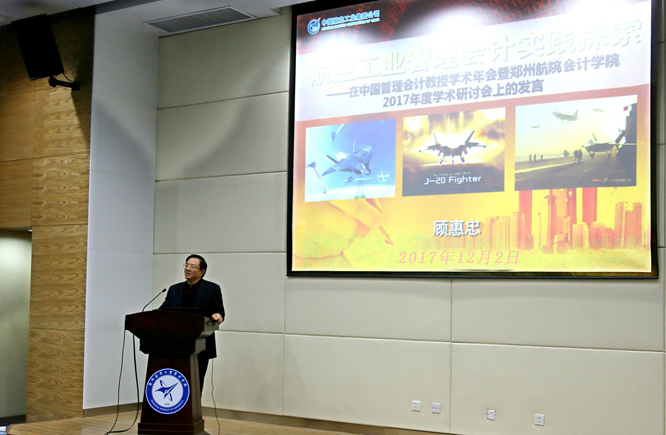12月2日至3日,中国管理会计教授学术年会暨郑州航院会计学院2017年度学术研讨会在我校图书馆举办。出席本次活动的嘉宾有中国会计学会副会长、管理会计专业委员会主任、中国航空工业集团公司原党组成员、副总经理、总会计师顾惠忠,中国航空研究院副院长白小刚,航空工业发展研究中心高级专务王新河,航空工业发展研究中心财经所副所长、高级工程师陈浩,院长李勇,副院长李现宗,以及来自北京大学、中山大学、南开大学、厦门大学、上海财经大学等十余所高校的知名会计专家。