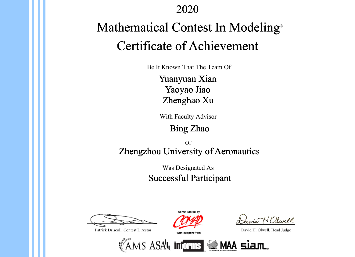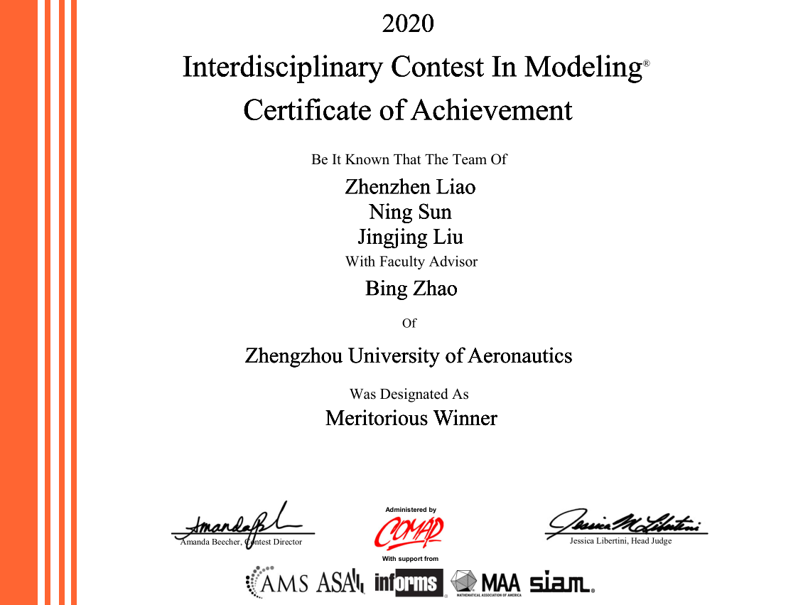 4月28日,2020年美国(国际)大学生数学建模竞赛(MCM/ICM)结果揭晓,经过四天四夜的激烈比赛,民航学院数学之家首次组建两支参赛队伍均获得奖项,其中一等奖一项,三等奖一项。