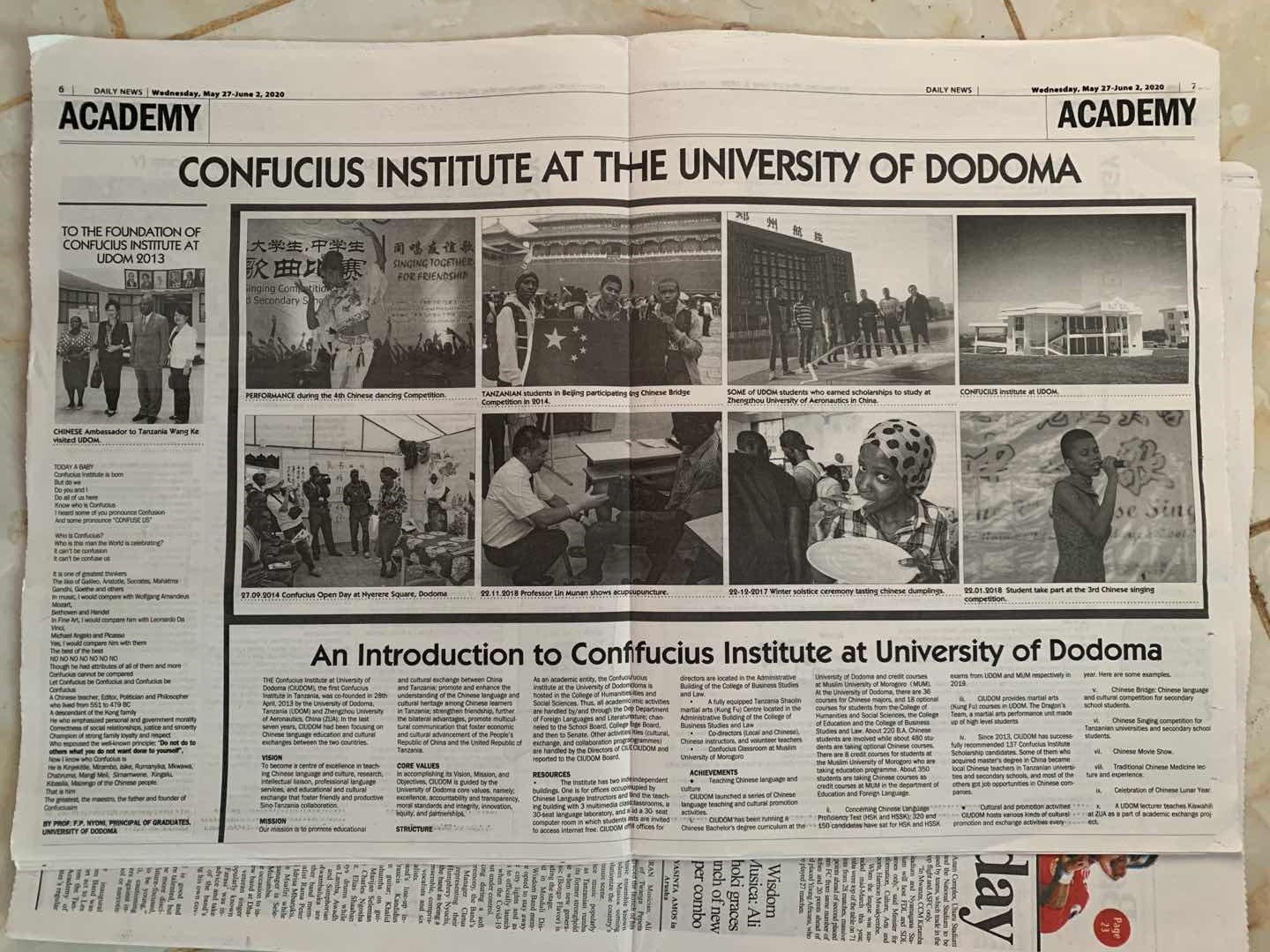 近日,由郑州航院—多多马大学孔子学院,与坦桑尼亚当地英文报纸《每日新闻》(DAILY NEWS)合作,每周设置专版,推广中国文化。