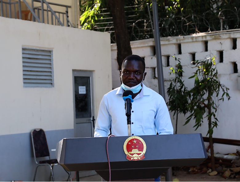 王思平参赞致欢迎辞。他表示青年是国家的希望和世界的未来,中国大使馆高度重视留学生工作。疫情期间,王克大使非常关心在华的坦桑留学生安全,亲自打电话并安排中国企业对坦桑留学生给予助学资金和发放防疫用品。