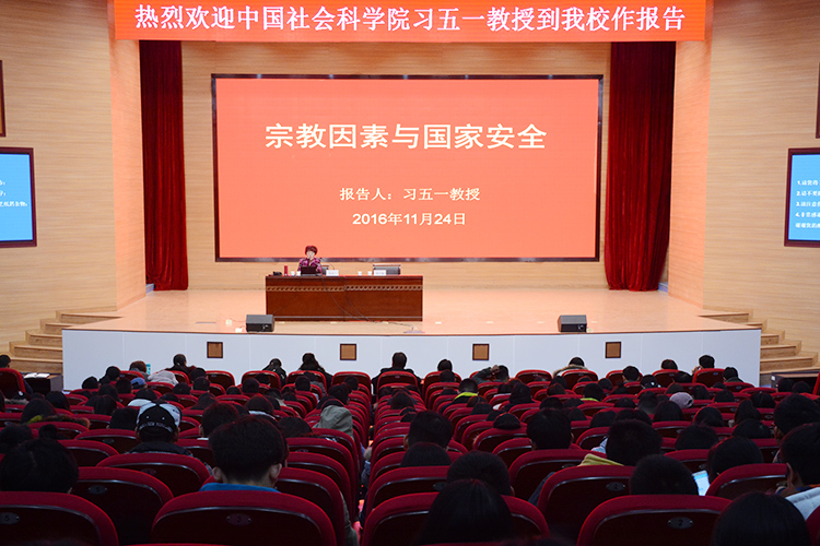 近日,中国社会科学院教授习五一应邀为我校师生作题为“宗教因素与国家安全”的专题报告会。校党委副书记、纪委书记石培哲,各学院党总支副书记、全体专兼职辅导员及400余名学生参加了报告会。报告会由学生处处长李广锋主持。