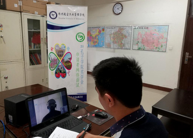 6月2日下午,“郑州航院2016年孔子学院奖学金生申请者网络面试”在东校区国际合作与交流处201室成功举行,这是我校首次举行此类面试,也意味着学校在留学生招生工作方面取得了突破性的进展。