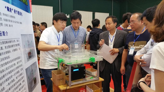 我校由王利红、童小利、李法新老师指导,机电工程学院学生任远凯、王联甫、唐鹏、许明西和朱德波设计的“轮转式硬币清点机”获河南赛区一等奖;由张成新、蔡文森、彭小磊、李姣姣和庞鹏丽设计的“‘魔盒’硬币整理机”获河南赛区二等奖。