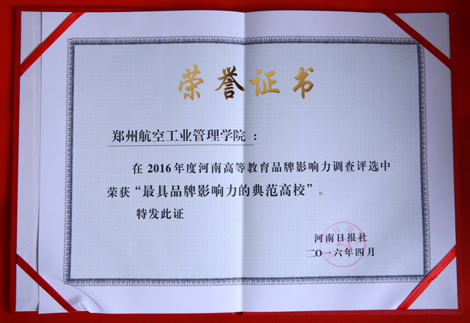 4月26日,备受社会各界关注,由河南日报报业集团举办的“2016年度河南高等教育品牌影响力”调查评选活动结果揭晓,我校荣获2016年度“最具品牌影响力的典范高校”和“最具就业竞争力的十佳典范高校”荣誉称号。