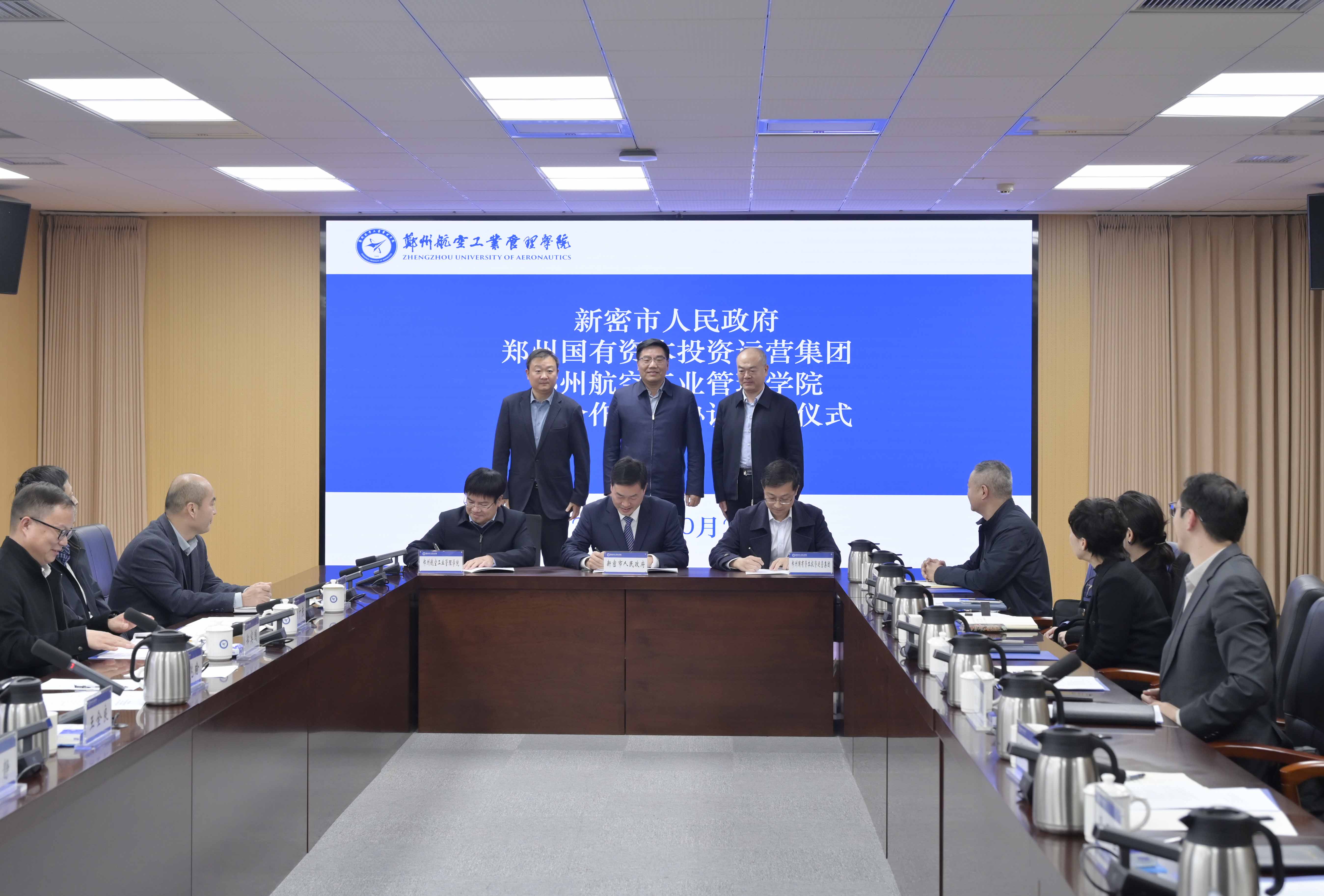 党委办公室、发展规划处、科技处、社科处、航空经济发展河南省协同创新中心、经济学院等单位相关负责人参加签约仪式。