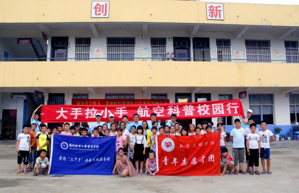 2018年7月11日,我校和河南省文明办共同援建的两个航空科普馆分别在周口西华半截楼小学和漯河舞阳余庄小学揭牌开馆,我校在两处设立的志愿服务基地也同时揭牌。