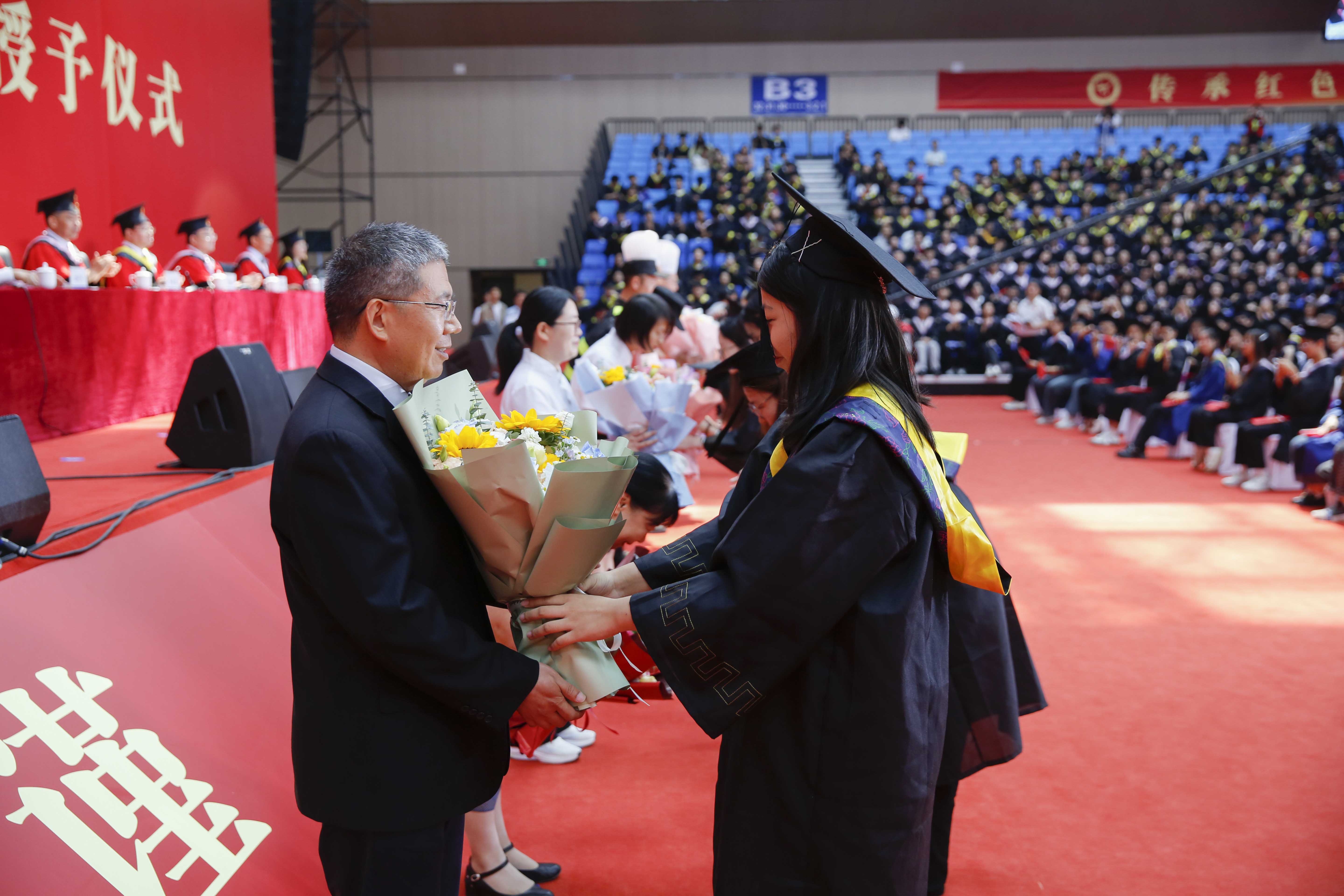 6月6日,我校举行2024届毕业典礼暨学位授予仪式,全体在校校领导出席典礼,各院部和职能部门负责人、导师代表、毕业班辅导员、学生家长代表、校友联络员代表及校园服务保障人员代表齐聚一堂,共同见证2024届毕业学子收获的喜悦。毕业典礼由副校长张聚伟主持。
